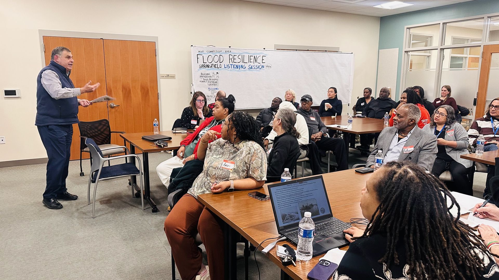 In late September, resident advisors (RAs) from the Public Health Institute of Western MA gathered at Regreen Springfield for a Peer-to-Peer Learning Workshop. RAs from the following 5 coalitions shared successes, challenges, and key learnings. A team of RAs representing each initiative led presentations that sparked dialogue, allowing everyone to learn from one another, ask questions, and deepen their understanding of community efforts. Intergenerational Social Connections (ISC): Focuses on bringing youth and older adults together in Springfield to reduce loneliness, build relationships, and strengthen community across generations. Live Well Springfield Climate Change & Health Equity (CCHE): Focuses on advancing community choice energy for Springfield, creating strategies to address extreme heat, and developing a new Climate Change Action Plan for the city. Live Well Springfield Transforming Communities Initiative (TCI): Focuses on addressing Springfield’s housing needs by improving housing conditions, increasing affordability, and expanding opportunities for homeownership. Healthy Air Network: Focuses on monitoring air quality, exploring transportation issues, developing an innovative app, and tackling climate change challenges. The workshop also served as a warm welcome and orientation for new RAs joining the committees, especially our new Parent Advisors for the Youth Mental Health Coalition (YMHC), which is focused on youth mental health and problem gambling prevention. This was the largest cohort of resident advisors for the Public Health Institute and Live Well Springfield yet.